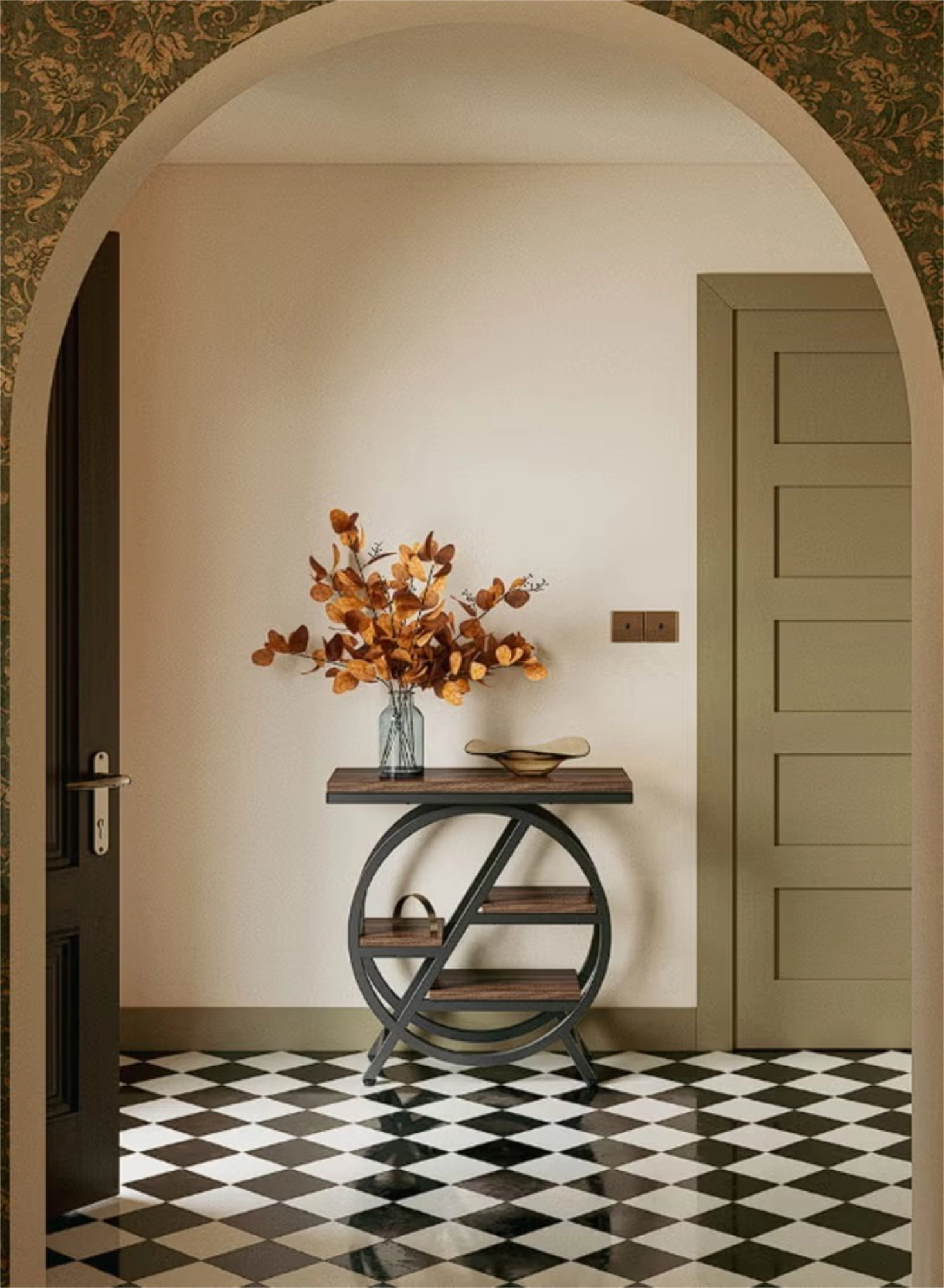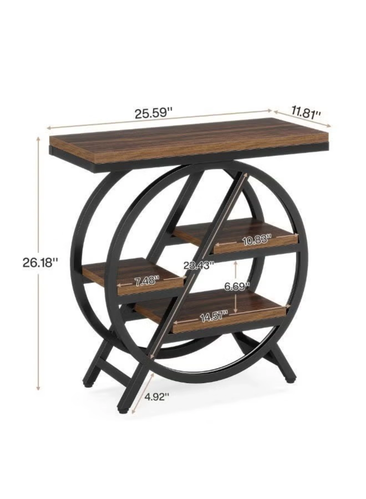 Elevate your space with the perfect blend of geometric elegance and industrial charm. This 4-tier side table features a striking circular metal frame that acts as a conversation starter while providing rock-solid stability. Designed for clutter-free living, the four staggered shelves offer ample room for lamps, books, and decor, creating an airy feel that is ideal for compact apartments, condos, and home offices. Whether used as a chic nightstand or a functional sofa end table, its neutral rustic brown and matte black palette blends seamlessly into any contemporary UAE home.
